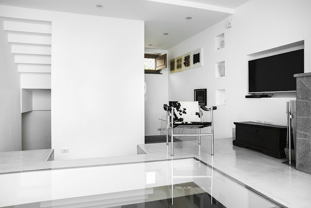 Internally, the characteristic trait of the project is the visual continuity between the various levels, created by a kind of glazed skylight built in the first floor slab, which corresponds to the ground floor an insert of recovery tiles.