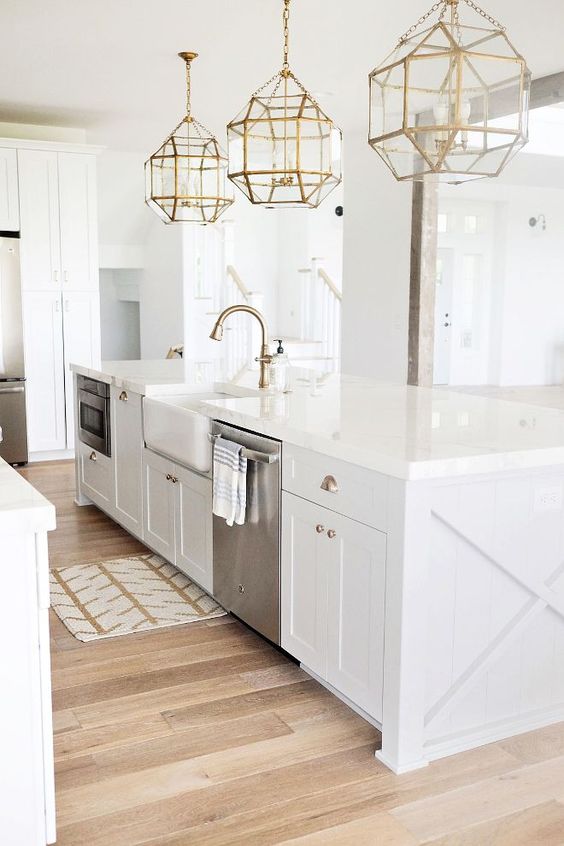 Provate a scegliere in color oro le maniglie degli sportelli, i rubinetti e le lampade.